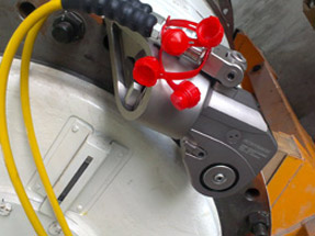 聚頂機(jī)械針對(duì)化工廠裝備公司的情況,派遣了有現(xiàn)場(chǎng)經(jīng)驗(yàn)的技術(shù)員前往查看,現(xiàn)場(chǎng)工況相對(duì)不是很復(fù)雜,標(biāo)配的液壓扳手就能解決,但也存在較為特殊的情況,如法蘭連接處不是平面,夾角不是垂直或者工作空間狹小等情況,聚頂機(jī)械公司從用戶的角度出發(fā),給出的解決方案不光滿足工作要求