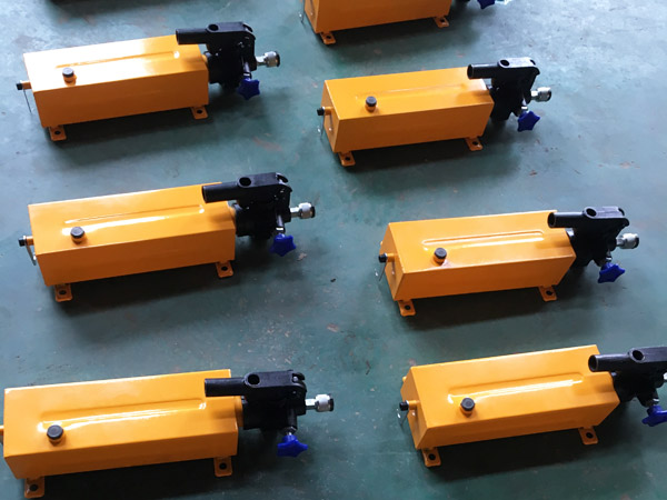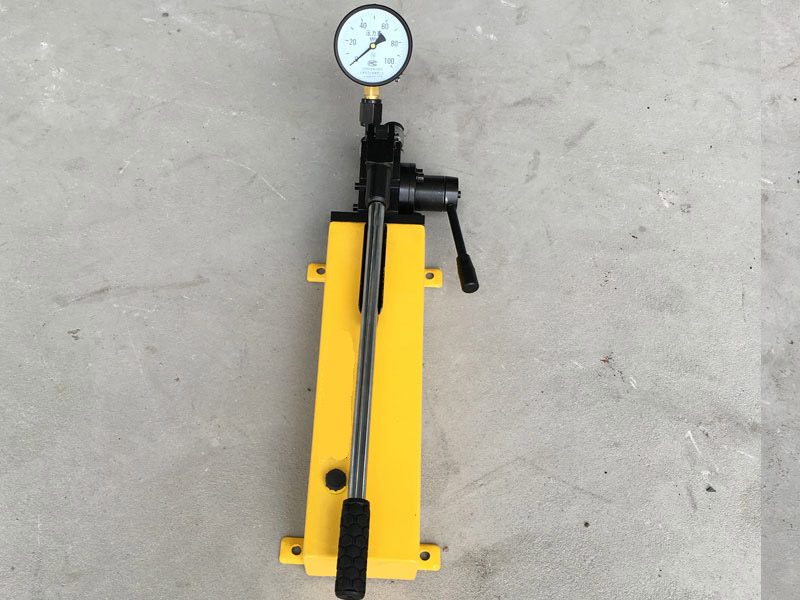SYB系列手動泵是由軸向柱塞泵、組臺閥、油箱等組成的一種小型液壓泵站。該系列手動泵具有壓力高、體積小、操作方便等特點,特別適用于野外電源條件下作業(yè)。該泵可作為耐壓試驗泵用,當(dāng)配備油缸或?qū)S脵C(jī)具后可以進(jìn)行起重、彎曲、調(diào)直壓型、剪切、裝卸等作業(yè)。