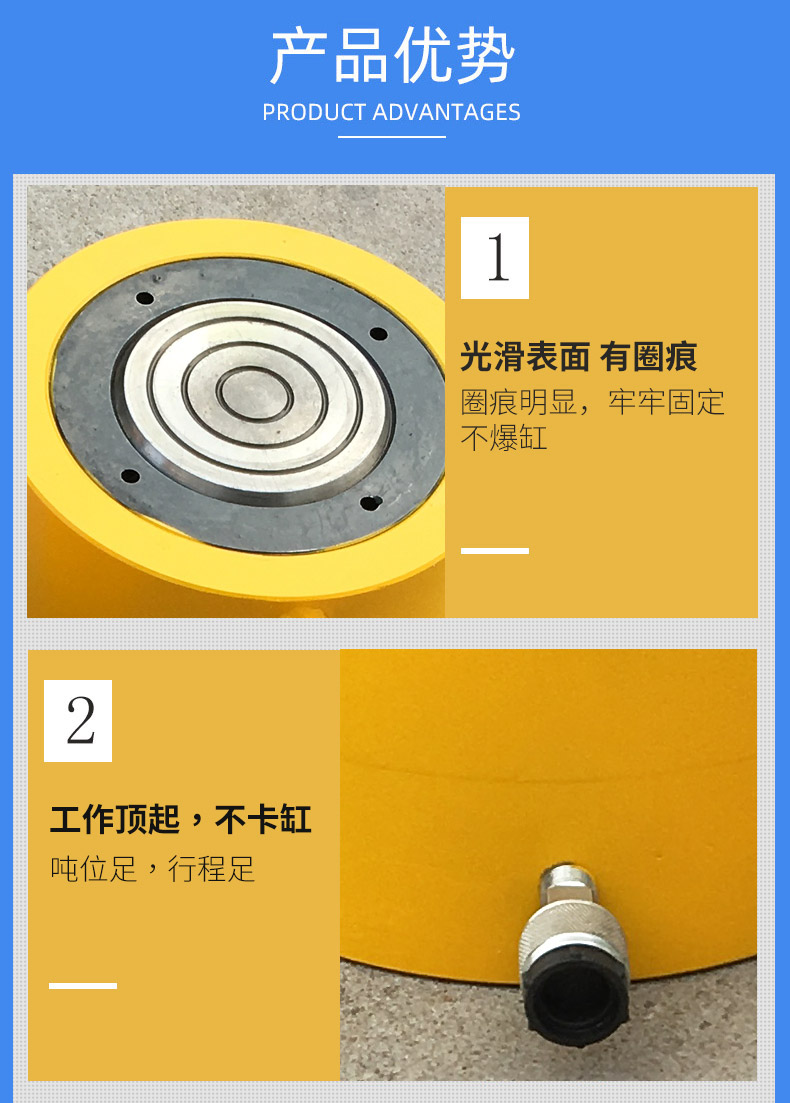6、千斤頂將重物頂升后,應(yīng)及時用支撐物將重物支撐牢固,禁止將千斤頂作為支撐物使用。如需長時間支撐重物請選用 CLL自鎖式千斤頂